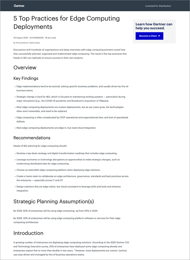 Gartner® 5 Top Practices for Edge Computing Deployments